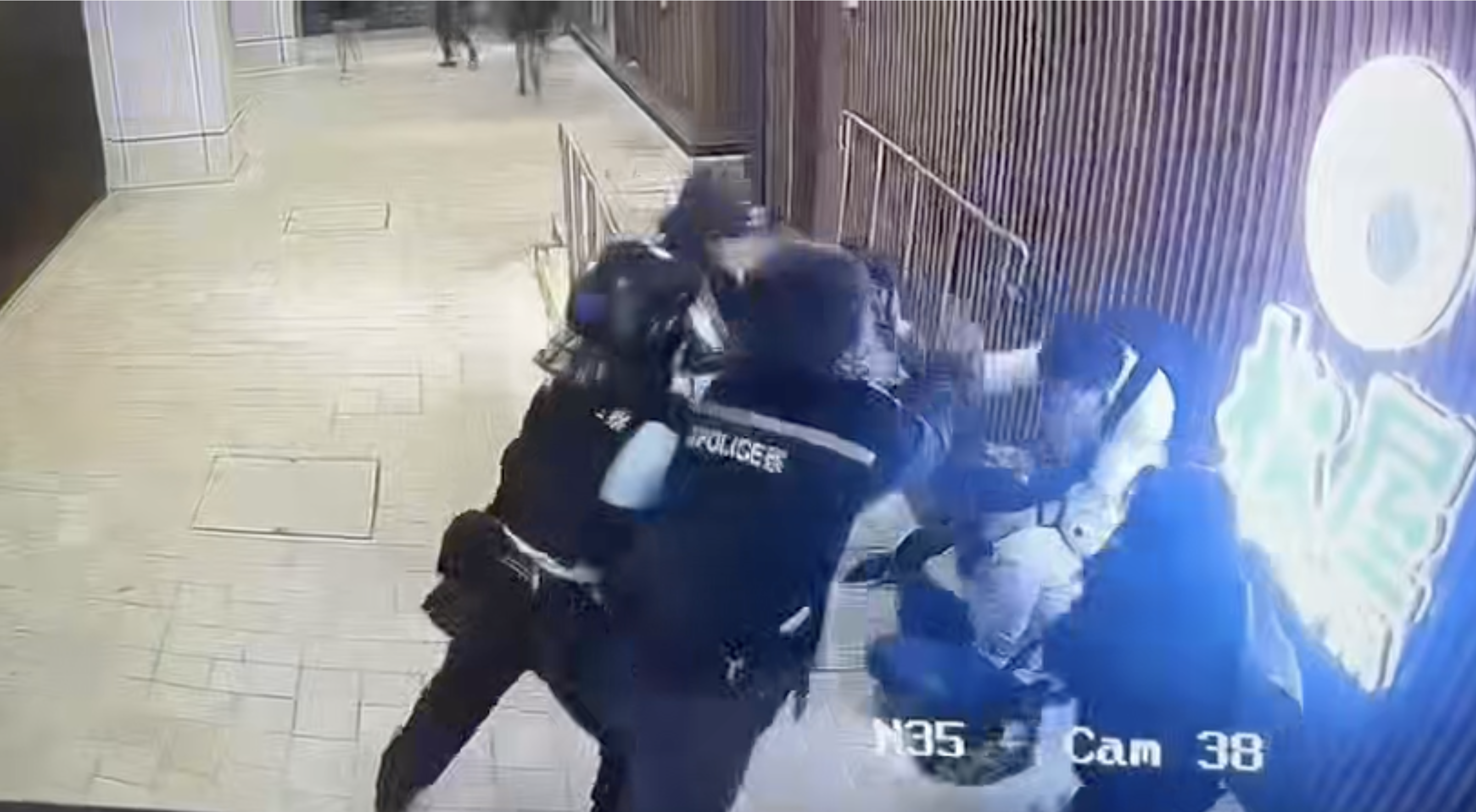 香港警方在记者会上称,新界北冲锋队到场后,发现这名持刀男子正向过路人群挥舞长刀,路人争相恐慌避开,警员向该名男子发出口头警告,但男子拒绝配合,警员遂向该名男子施放一发胡椒水剂。男子随后逃入商场内部,企图从商场的另一个出口逃出,当他向外跑时挟持了一名51岁的女子。